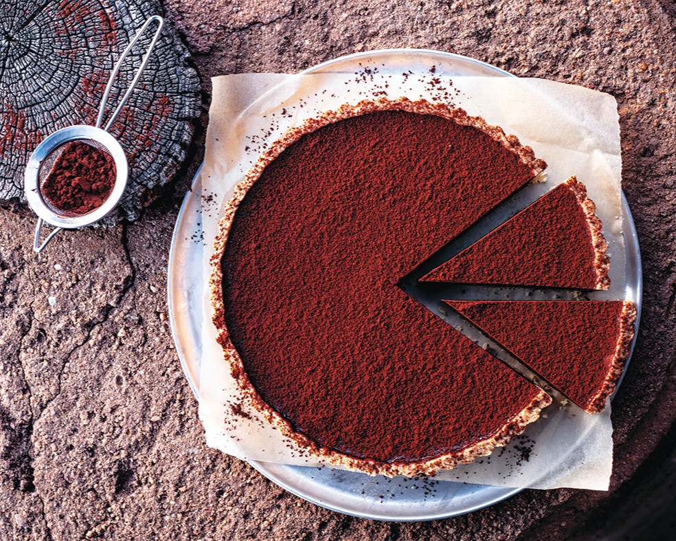 "There is nothing wrong with the classic melktert, but I’ve given it some decadent treatment, baking it with a chocolate filling. I first cooked this tart as part of one of the magical bush dinners at Madikwe Safari Lodge – and somehow the tart was at home in the bush. The cocoa and cinnamon topping is reminiscent of the deep red earth of the reserve, and after a day on safari with your senses overloaded, I thought the palate should have some fun too!"